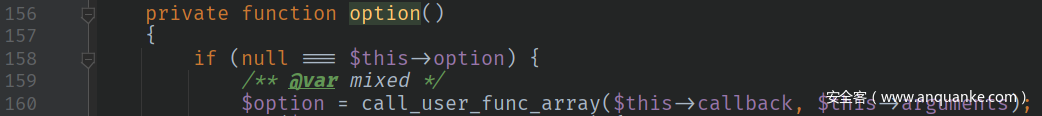 虽然option是private属性的方法,在其它类中无法直接调用,但是可以发现在该类自身中,许多函数都在调用option函数