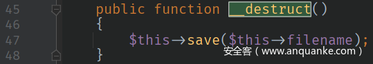 $this->filename可控,跟踪save函数: