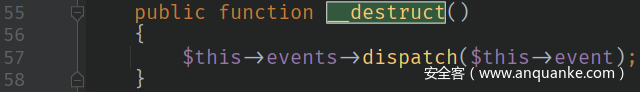 我们可以控制$this->events和$this->event。如果使$this->events为某个类,并且该类没有实现dispatch方法却有__call方法,那么就可以调用这个__call方法了