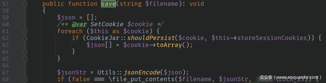 入口类为\vendor\guzzlehttp\guzzle\src\Cookie\FileCookieJar.php的class FileCookieJar。此类在Laravel 5中没有出现。其有__destruct函数: