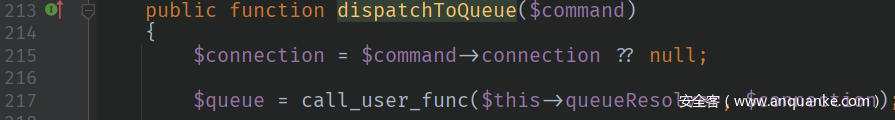 然后就能够进入$this->dispatchToQueue方法