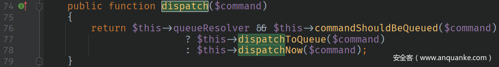 \vendor\laravel\framework\src\Illuminate\Bus\Dispatcher.php的class Dispatcher存在dispatch方法