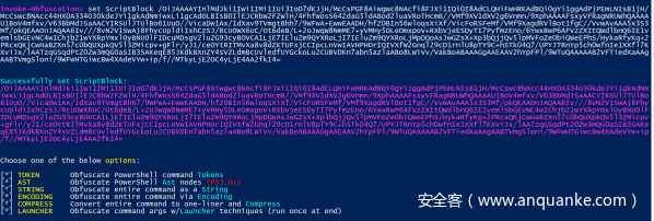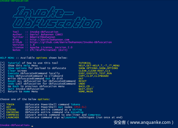 现在我们的目标是处理当前的载荷,对其进行混淆处理,使其能够骗过Windows Defender。对于这个任务,最好的一个工具就是Daniel Bohannon所开发的Invoke-Obfuscation,大家可以参考Github页面了解更多细节。