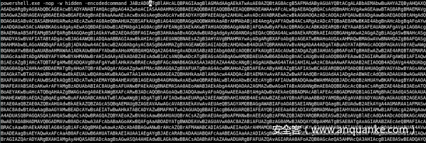 为了解码这个命令,我们需要删除其中的powershell.exe -nop -w hidden -encodedcommand字符串,保留剩余的字符串,然后使用如下命令完成解码: