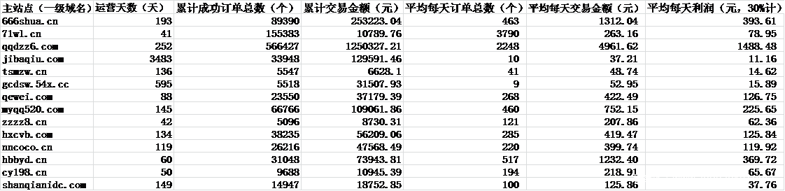 代刷业务以价格低廉的特点吸引了大量用户,而实际上,代刷走的是“薄利多销”的路线,再加上代刷网站或软件的开发与维护成本极低,一个流行代刷主站的获利往往十分可观。通过长期跟进多个流行主站与分站,我们整理汇总出了部分代刷网站的盈利情况。由图可见,主站的日平均利润在数十元至上千元不等,差距甚是悬殊。日均收益最高的是一个主机名为“qqdzz.com”的主站,其运营天数不到一年,而累计交易额已达到了一百多万。