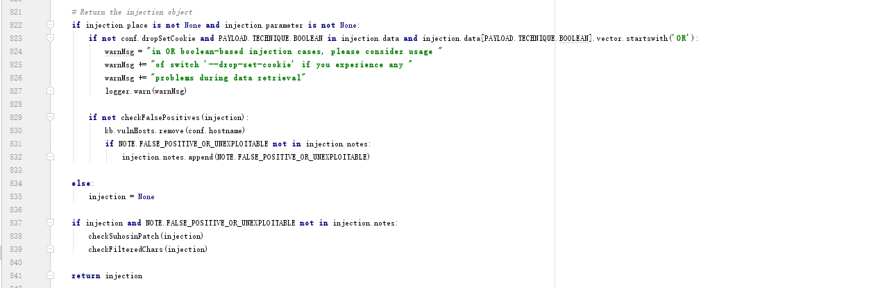 在标记注入前,如果kb.heavilyDynamic(太多的变量了),还会进行一次使用ture payload判断是否如何规则。然后才把injectable置为true。