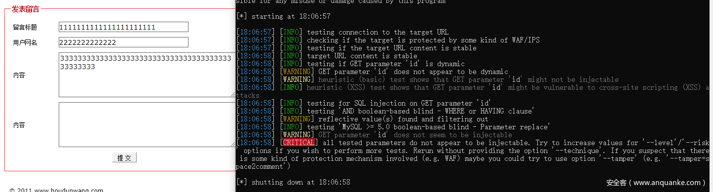 但是当把”33333333”增长一点,sqlmap是提取到”33333333…”作为了关键词来判断哪个页面正确哪个页面错误。