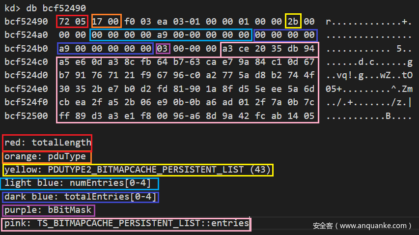 - RDP服务端分配的内核池大小由RDP客户端发送过来的BITMAPCACHE PERSISTENT LIST结构中的