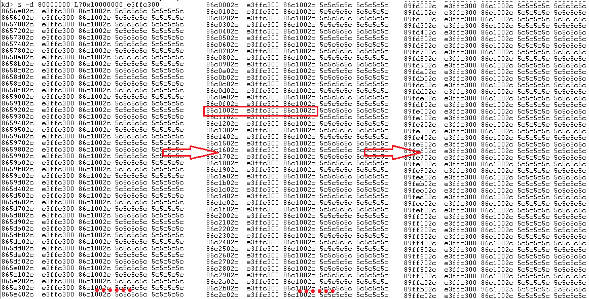此外在某些情况下,当RDP服务端使用完有些内核池后,可能会释放掉这些内核池,但内核池的数据并不会被清除,这样我们喷射到内核中的数据依然可以在漏洞利用过程中使用。