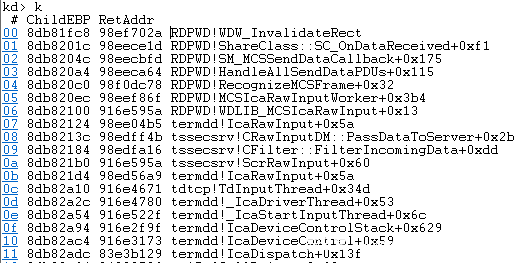 图17. RDPWD!WDW_InvalidateRect栈轨迹