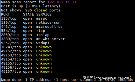 1、从扫描的结果来看,不难看出这是一个开放着445、3389端口的Windows系统,那就先用永恒之蓝攻击试试