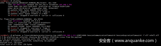 1、查看自己的IP地址,并根据自己的IP地址及目标靶机的系统类型生成对应的后门文件