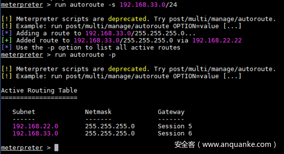 run autoroute -s 192.168.33.0/24