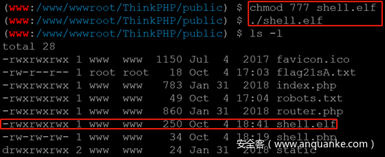 (www:/www/wwwroot/ThinkPHP/public) $ chmod 777 shell.elf