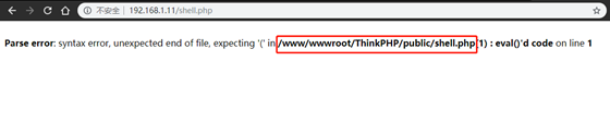 8、可以看到shell.php已经被上传上去了,但是提示语法错误,同时蚁剑也返回数据为空,看来一句话上传的有点问题,那就cat查看一下