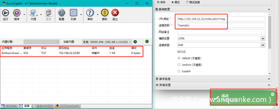 10、来到标签页,可以看到一句话生效了,接下里在SocksCap中打开蚁剑,利用蚁剑连接,注意SocksCap设置好代理
