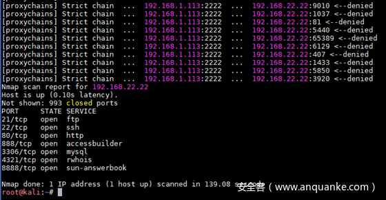 root@kali:~# proxychains4 nmap -Pn -sT 192.168.22.22