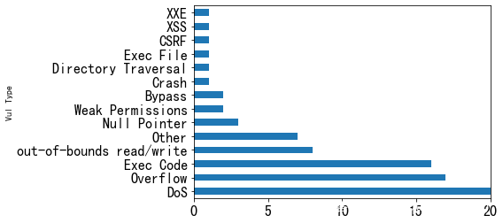 从漏洞类型来看,前三名分别是DoS、溢出和代码执行;CSRF、XSS、XXE相对少见。