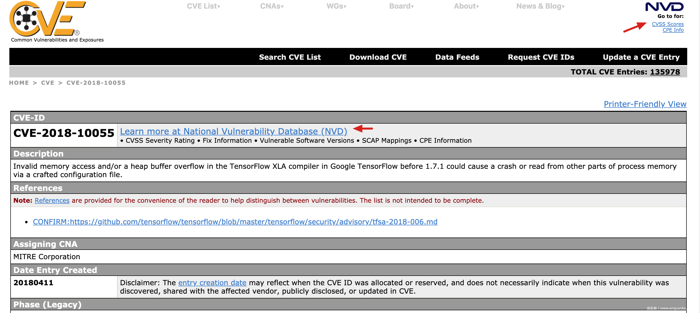 cvedetail上的所有数据取自NVD (National Vulnerability Database,美国国家通用漏洞数据库)提供的XML。相比 CVE官网官网而言,维度更全、搜索功能更全面,但可能缺少一些已发布的漏洞。详细介绍见此:https://www.cvedetails.com/how-does-it-work.php