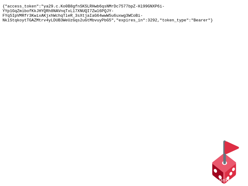 {"access_token":"ya29.c.Ko0B8gfnSKSLRHwb6qsNMrDc7577bpZ-Hl99GNXP6i-YYp1GqZmibofKkJHYQRh8NAVnqTxLl7XNUQI7Zwl6PQJY-FYq5IpVMRfr3KwixAKjxhWchqTleR_3sXtjaIaG64wwW5u6uxwg3WCoBi-NklStqkoytTGAZMtrv4yLDUB3WeUzGqs2uGtMbvuyPbG5", “expires_in":3292, "token_type":"Bearer"}