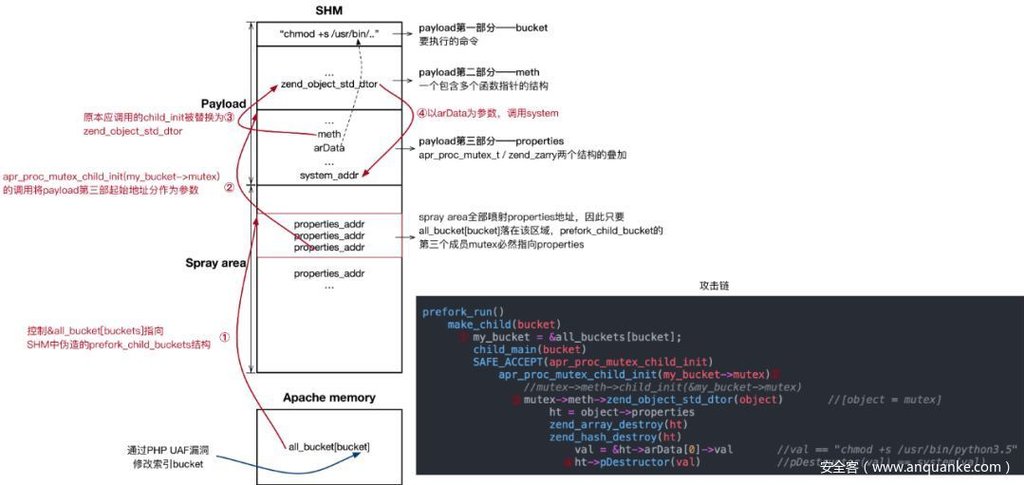 - all_buckets[bucket]是如何指向SHM中伪造的结构以及堆喷的问题