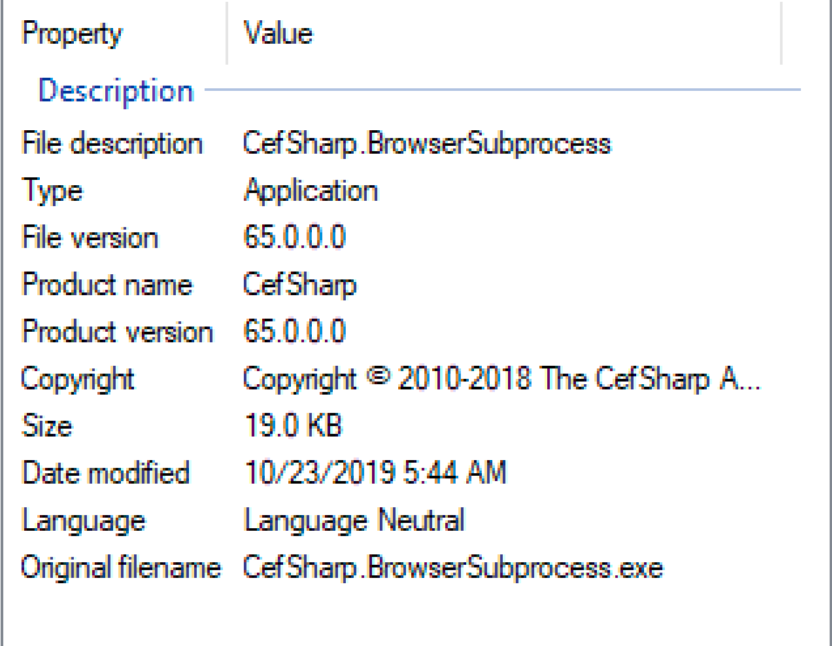 完成如上操作后,现在只有这3个SID对应的用户才能访问更新目录。绕过Owner及DACL检查后,最后一个任务就是解决文件完整性校验。在执行更新文件之前,目标服务会调用Updater.IsUpdatePackageAuthentic()来检查该程序,确保程序经过Avira签名,并且签名有效。如果C:\ProgramData\Avira\VPN\Update\AviraVPNInstaller.exe未经Avira签名,或者不包含有效的数字签名,那么目标服务就不会执行该程序。为了绕过这一点,我们需要找到经Avira签名的一个文件,并且其ProductVersion属性大于当前安装的Avira.VPNService.exe版本号。经过一番搜索后,我找到了经过Avira签名的一个可执行文件:CefSharp.BrowserSubprocess.exe,对应的版本号为65.0.0.0: