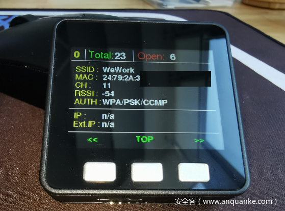 现在让我们开始了解 M5 在Hacking中的实战案例吧. 先看个由日本黑客 EI Kentaro 发布的WIFI SSID扫描应用. 据EI本尊的解释, 他是一个Old School 黑客. 平时喜欢收集各地的无线WIFI信息, 比如AP的MAC地址, SSID, 是否Captive Portal等. 但每次都需要打开电脑的话实在不方便, 而 M5 的出现完美解决这问题. 因为 M5 自带显示屏, 形状小巧玲珑. 使用的是乐欣ESP32 让开发 WIFI Scanner 变得非常容易.