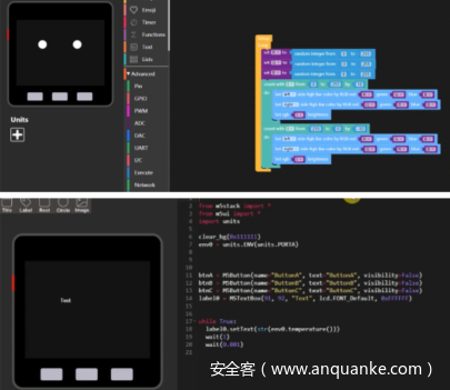 同时M5最大的亮点是将编程过程图形化. 这样的好处在于界面友好, 且易于理解. M5结合其模块化硬件, 设计了图形化编程软件UIFlow, 它是一个采用Blockly+Python的WebIDE. 用户可以直接用十分直观的方式编写程序.
