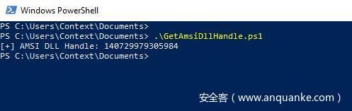 为了获得AMSI DLL的句柄,我们可以执行如下PowerShell脚本: