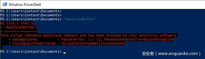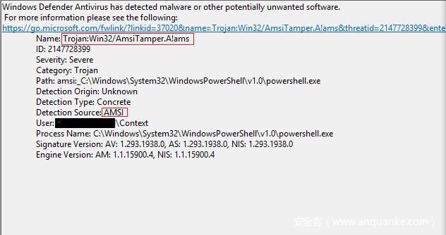 需要注意的是,AMSI不单单可以用来扫描脚本、代码、命令或者cmdlet,也可以用来扫描任何文件、内存或者数据流,如字符串、即时消息、图像或者视频。