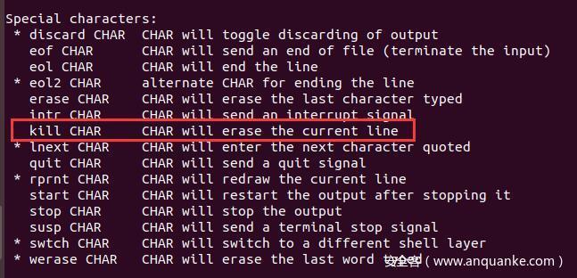 kill char 和终端的ctrl+U快捷键对应,会删除当前行的所有字符。对应前面的代码如下, cp 是已经读取字符的指针,buf是起始地址,b和backspace键对应,"b b" 相当于删除一个字符,于是这个while 循环结束之后,cp 会回到buf的位置,也就是删除一行了。