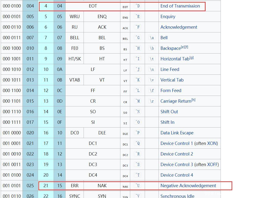 但是如果是从终端获取输入流,也就是我们说的pty,情况就不一样了,我们可以在维基百科中找到eof和kill 控制符对应的ascii. eof( EOT, ^D End-of-file character) 对应的ascii为0x04, kill为 0x15。 如果从pty获取输入流,那么这个漏洞就又复活了。