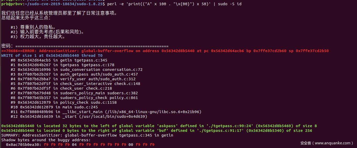 CVE-2019-18634 是一个 bss变量溢出漏洞,只有在开启 pwfeedback机制的时候才可能触发,最终利用可以使用root权限执行任意程序,危害较大。