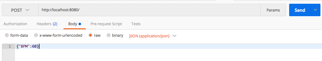 区块链中已经有一个创世区块。现在打开Postman,通过POST请求向服务器发送包含BPM字段(心率数据)的JSON数据。
