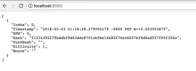 genesisBlock = Block{0, t.String(), 0, calculateHash(genesisBlock), "", difficulty, ""}