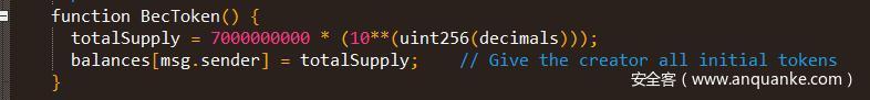 可以从代码totalSupply进行看到,bec代币总量共计才7 000 000 000枚。