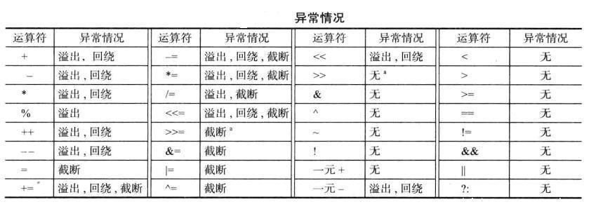C中容易引发整数安全问题的运算符简要罗列如下。