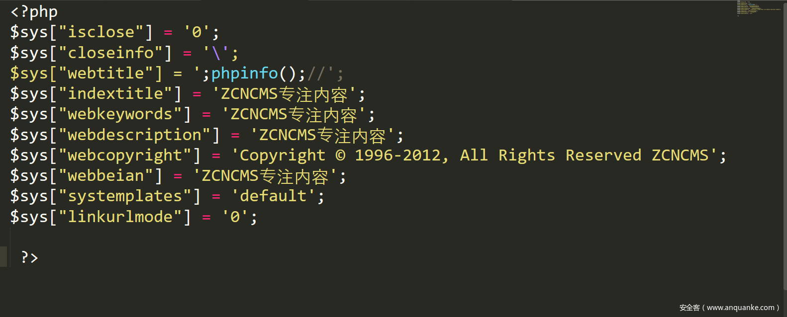 分析的漏洞包括,SQL注入、变量覆盖、CSRF、修改配置文件getshell。