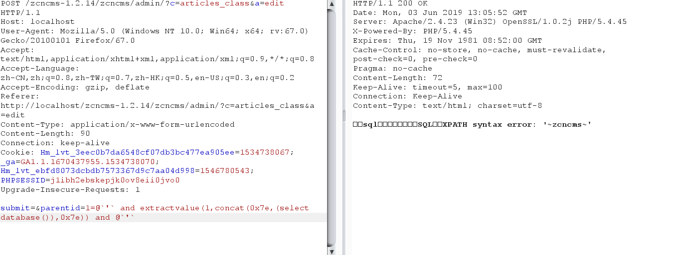 这里payload改为: and extractvalue(1,concat(0x7e,(database()),0x7e))也可,但利用受ids限制。