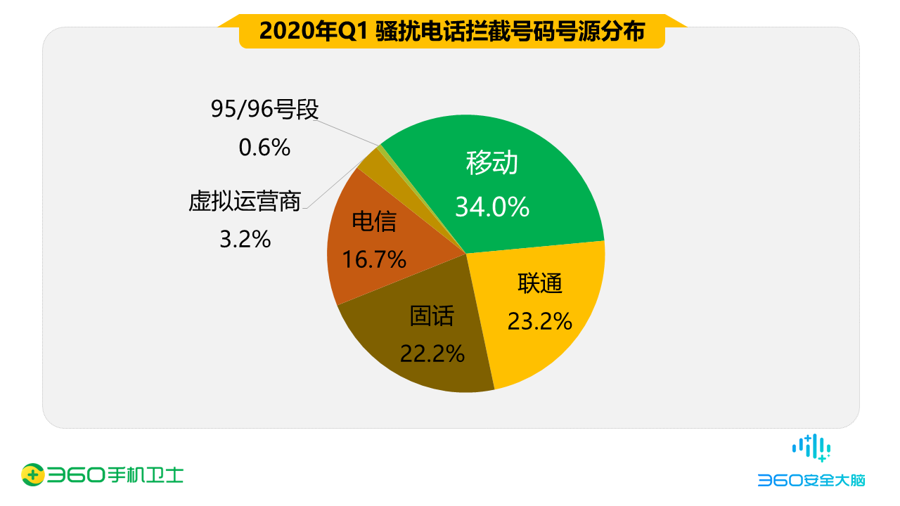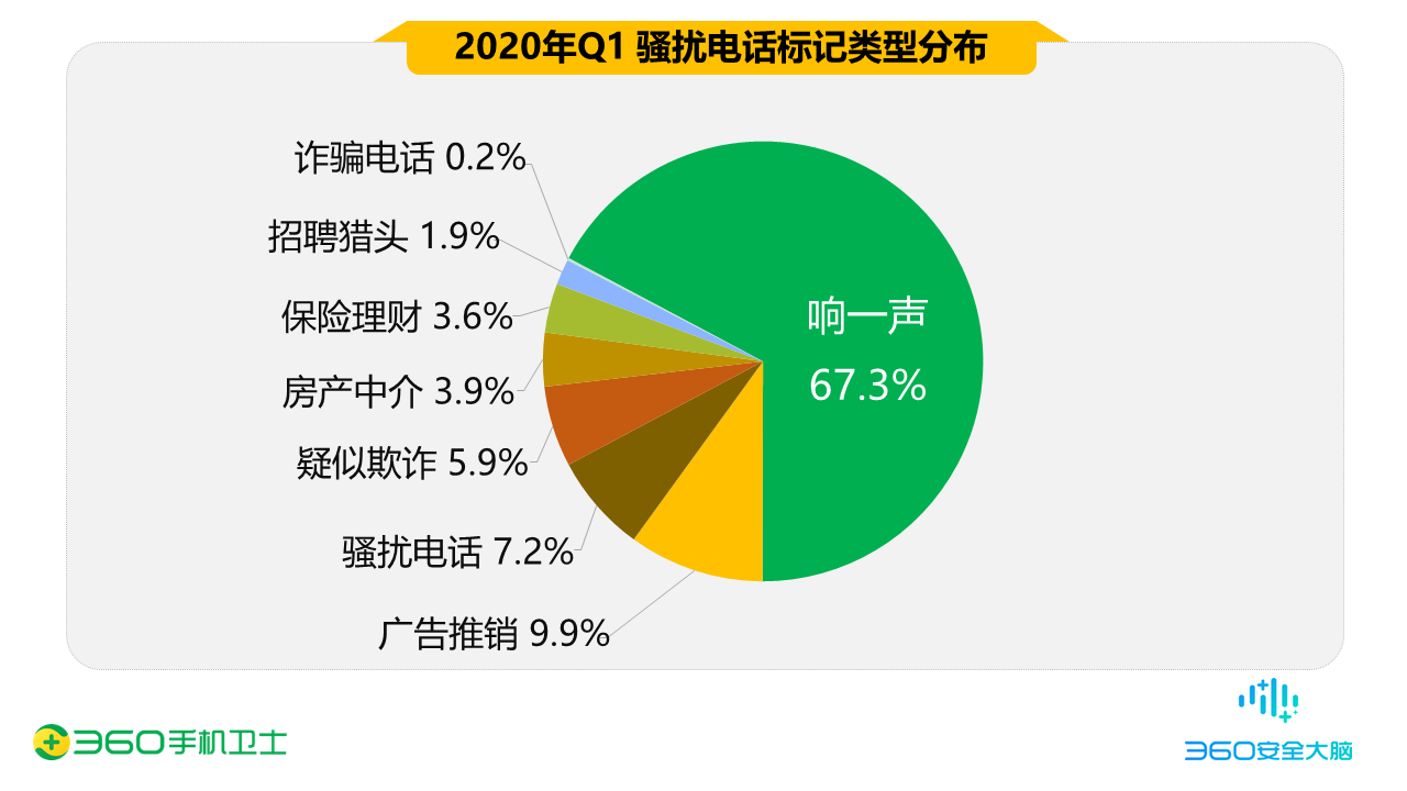 总序:2020年第一季度,360手机卫士共为全国用户识别和拦截各类骚扰电话约44.9亿次,平均每天识别和拦截骚扰电话约0.5亿次。
