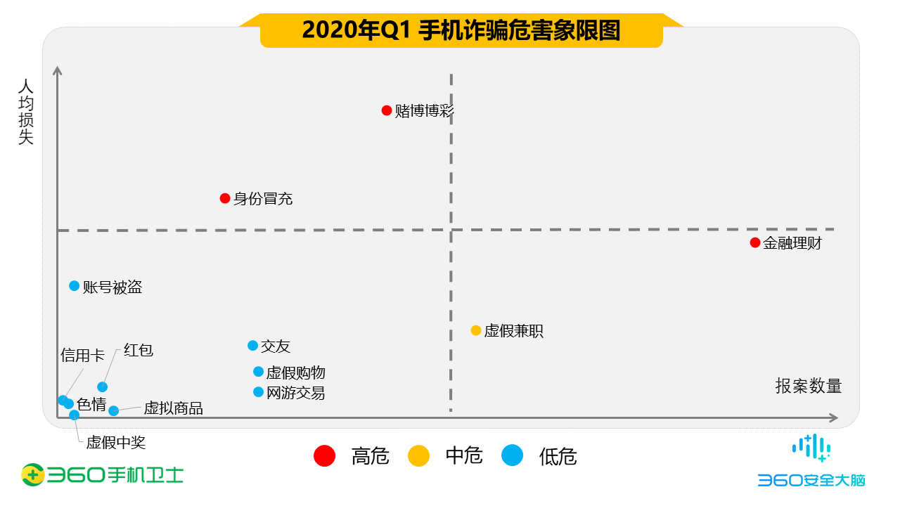 l手机诈骗中赌博博彩、身份冒充、金融理财属于高危诈骗类型;