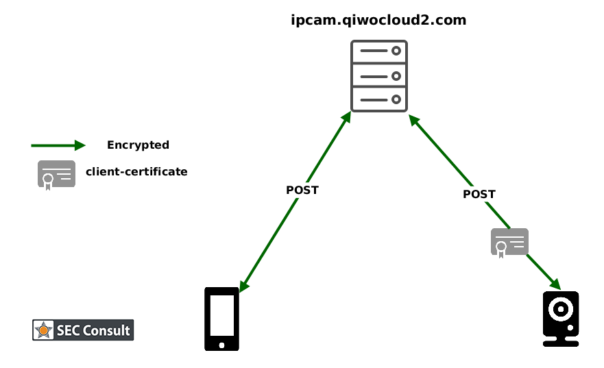 我们在对婴儿监视器和云端服务之间的HTTPS通信数据进行分析和观察之后发现,婴儿监监视器设备上使用了一个客户端SSL证书来实现用户验证功能。如果无法提供有效的客户端证书,那我们就不可能观察并拦截到婴儿监视器的HTTPS通信数据。但是通过利用一个已知漏洞并提取出客户端SSL证书(几乎全世界所有的婴儿监视器使用的都是相同的证书!)和静态私钥,我们就可以观察并拦截到婴儿监视器的HTTPS通信数据了。