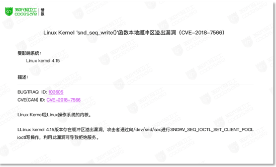 日前,360代码卫士“开源项目检测计划”发现了多个Linux内核的安全漏洞(CVE-2018-7566、CVE-2018-9858、CVE-2018-9865), 并在第一时间将漏洞信息提交给了Linux内核组织,协助其进行漏洞修复。