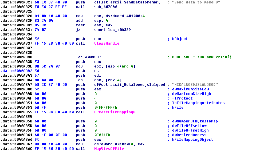 很明显代码获取主机所有网卡的IP地址以及所有和本机有网络连接的IP地址作为目标进行MS17-010 漏洞扫描。提取shellcode并分析,得出shellcode执行的操作和smb_pwn()代码的行为基本相同。