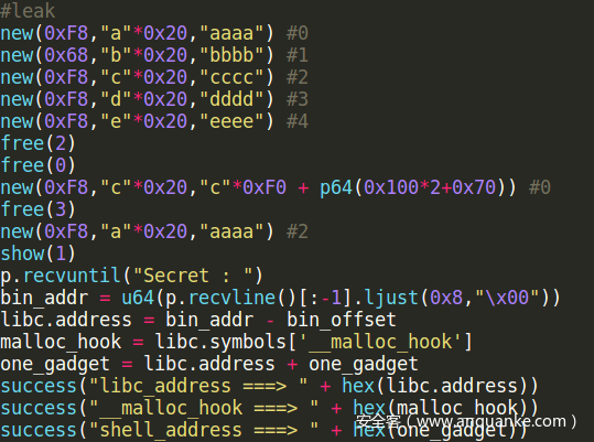 红框中的代码有泄露漏洞,可以泄露堆的地址
