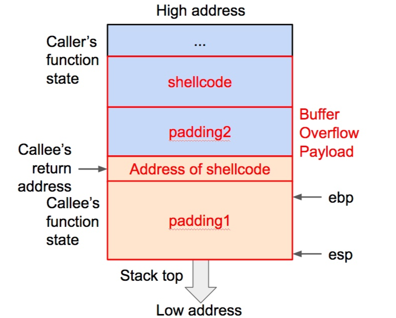 payload : padding1 + address of shellcode + padding2 + shellcode