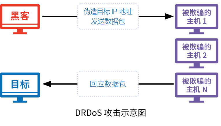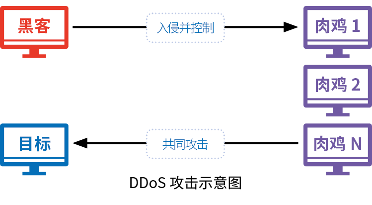 DDoS攻击形态由起初一对一的DoS攻击,向借助C/S系统技术的DDoS攻击模式演进;近年来已形成不需要配备大量肉鸡、利用广播地址与回应请求实现拒绝服务的DRDoS攻击模式。